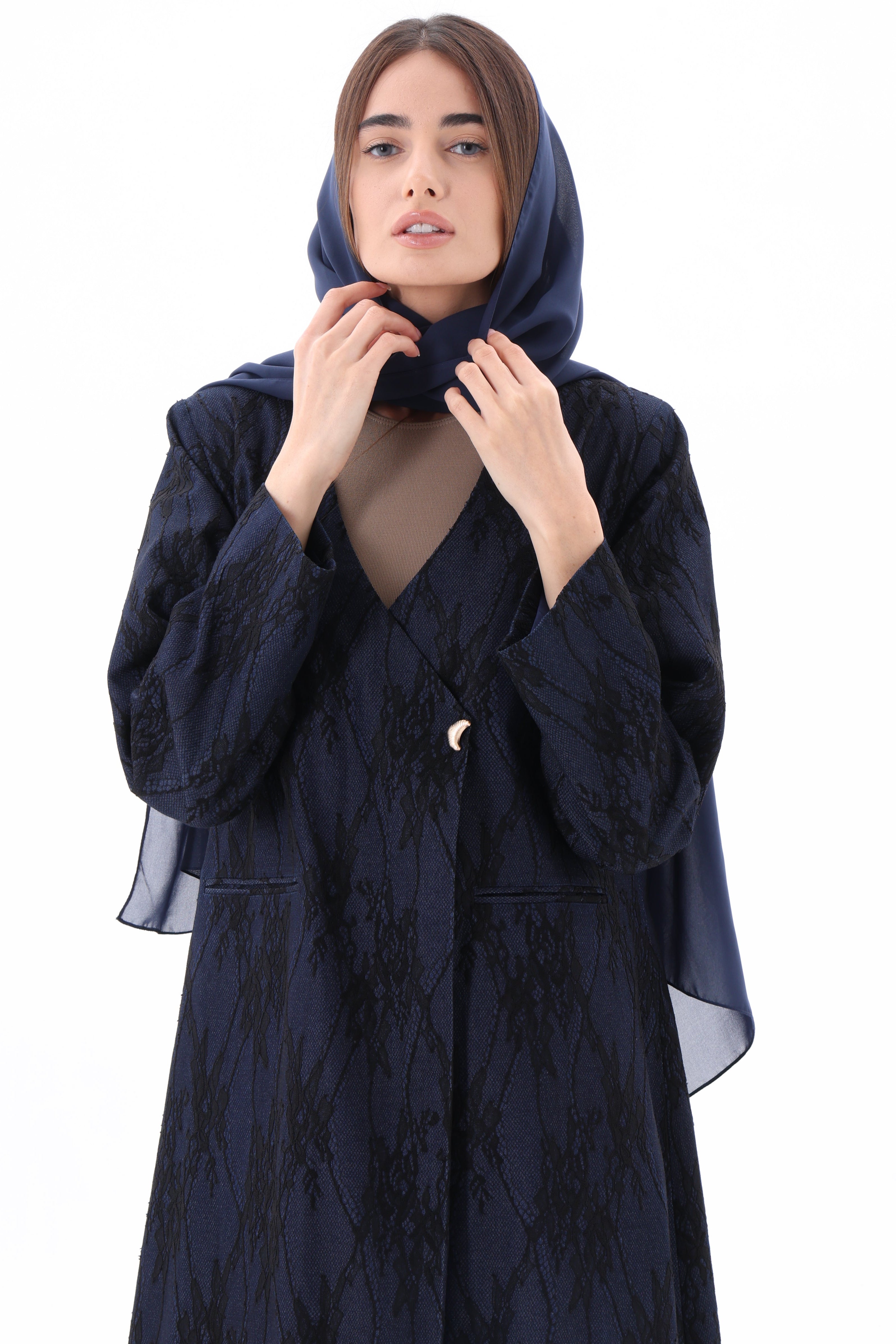 Coral - Elevate your everyday style with this contemporary abaya in soft denim, enhanced with refined French lace detailing and a coordinating wrap. The practical side button closure adds functional elegance, while the thoughtful design merges casual comfort with polished sophistication. An innovative piece for the modern wardrobe.