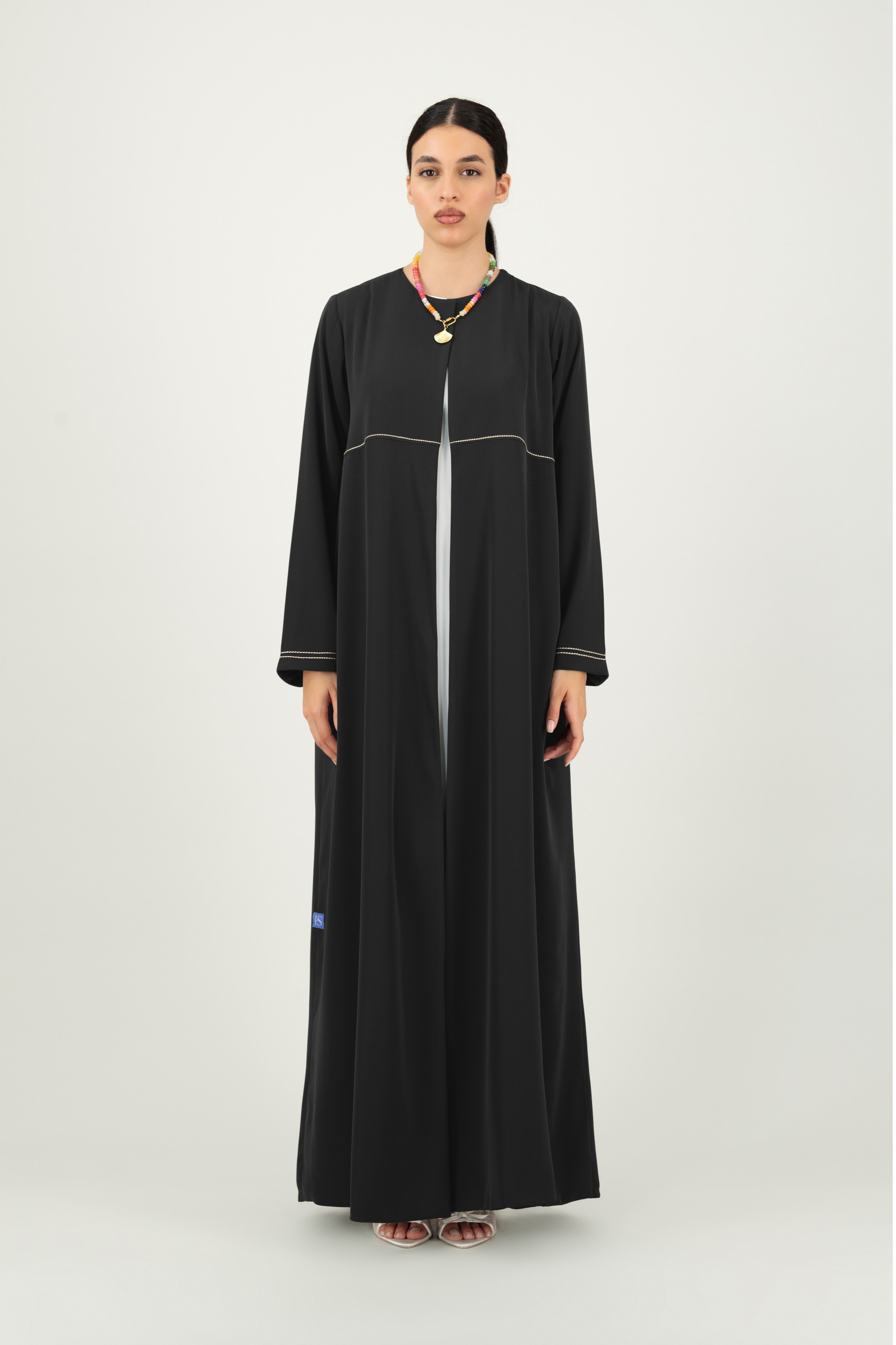 Dana Abaya features a refined yoke detail complemented by elegant anchor thread stitching across the bodice and sleeves.