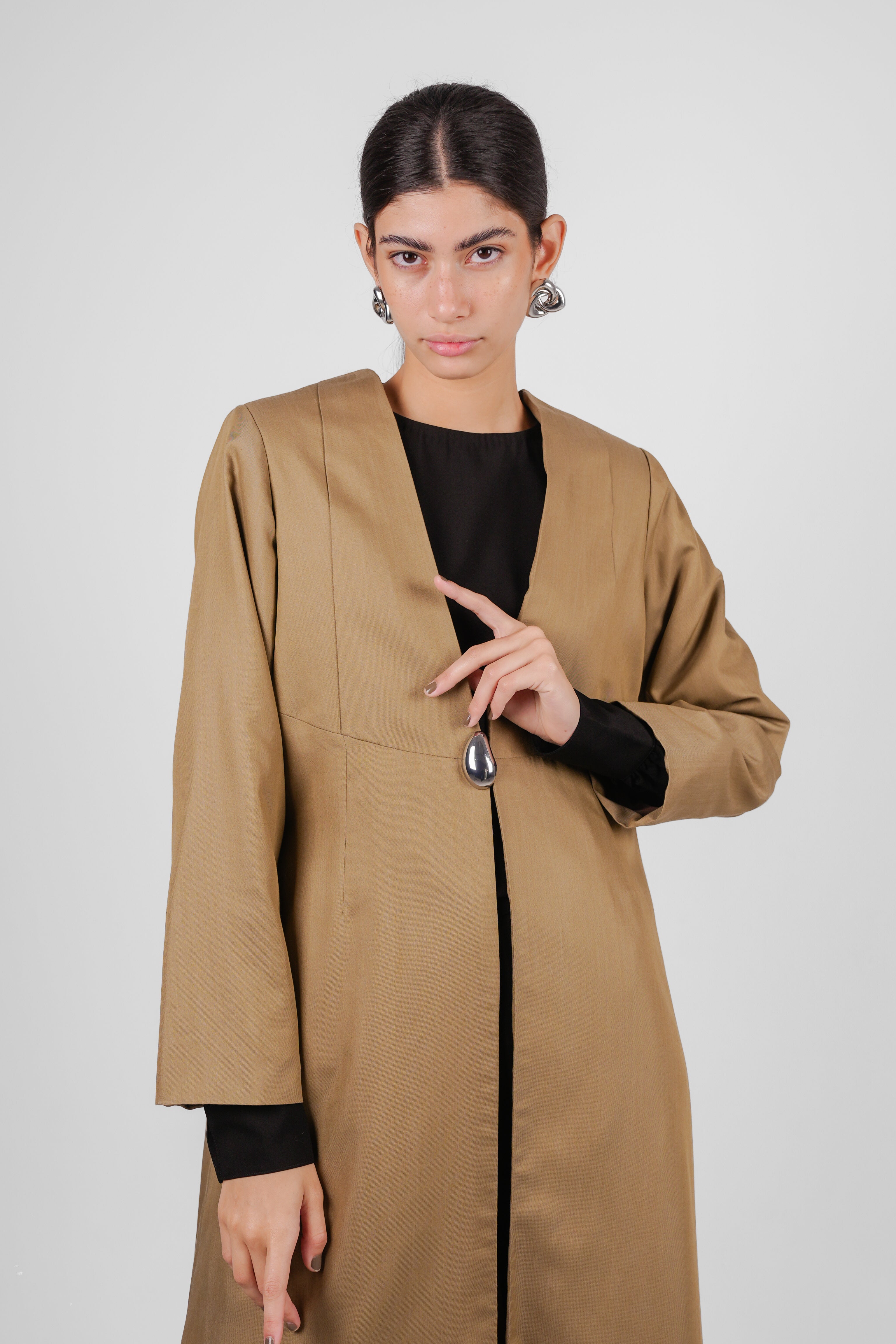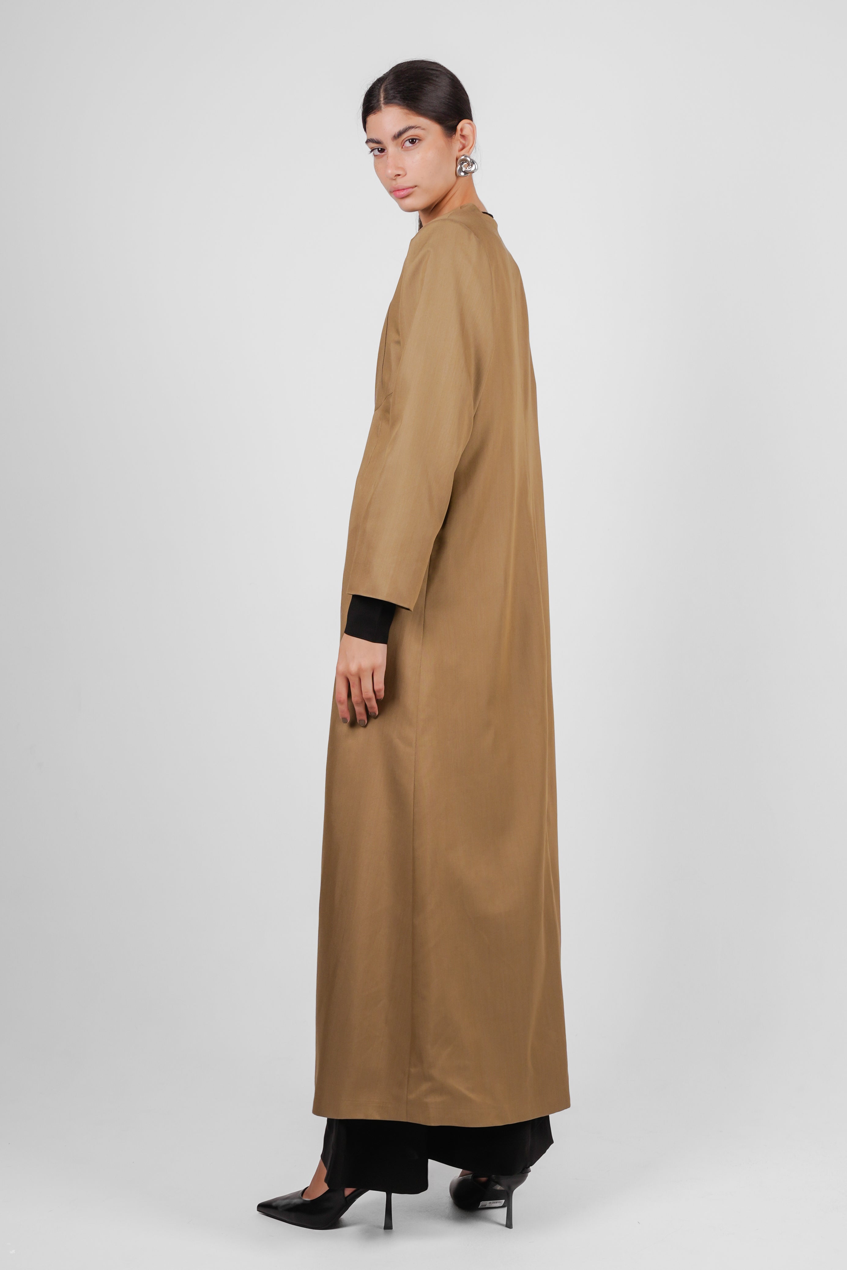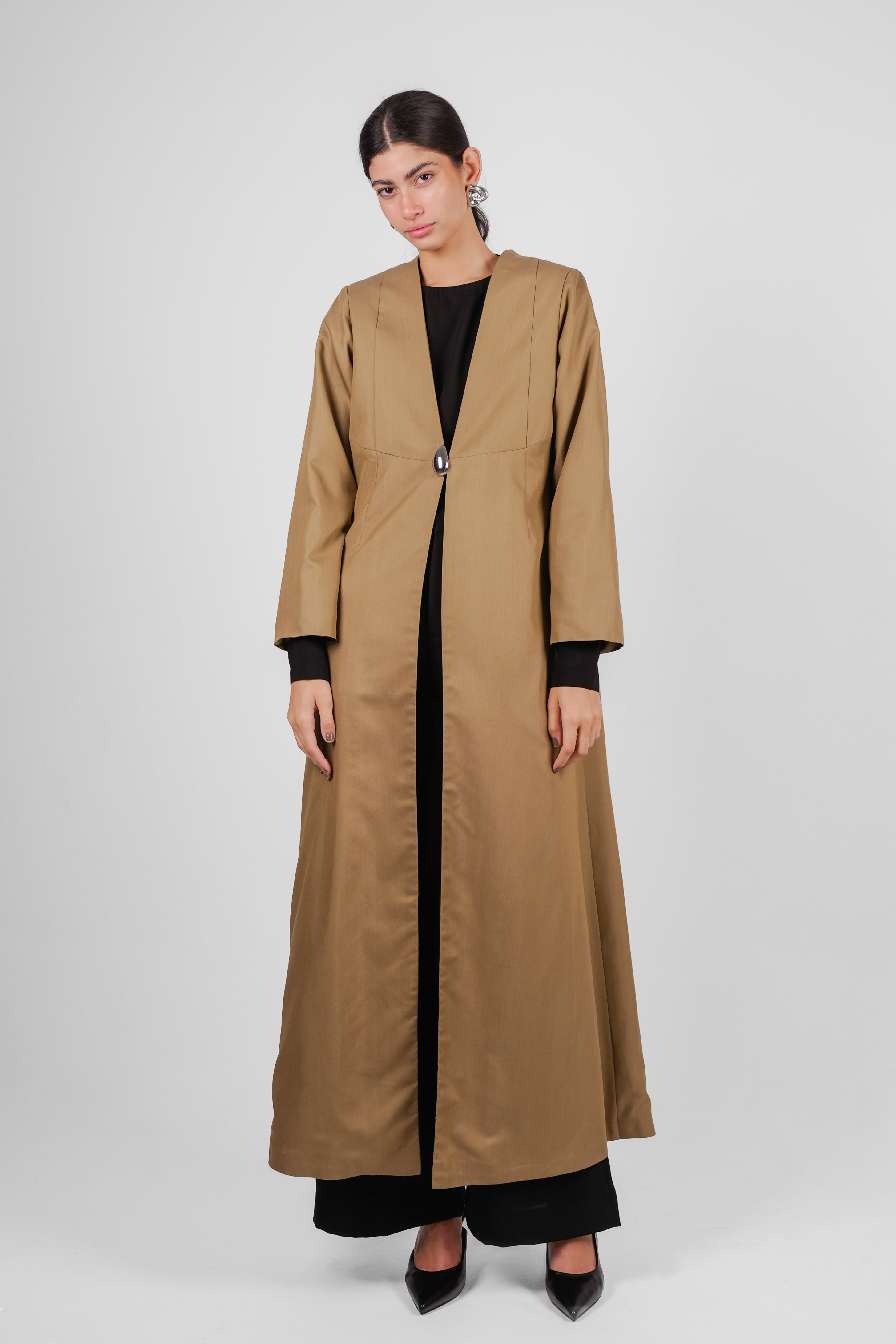 GRACE-Elevate your winter wardrobe with this sophisticated beige abaya, designed for the modern woman who values both elegance and comfort.