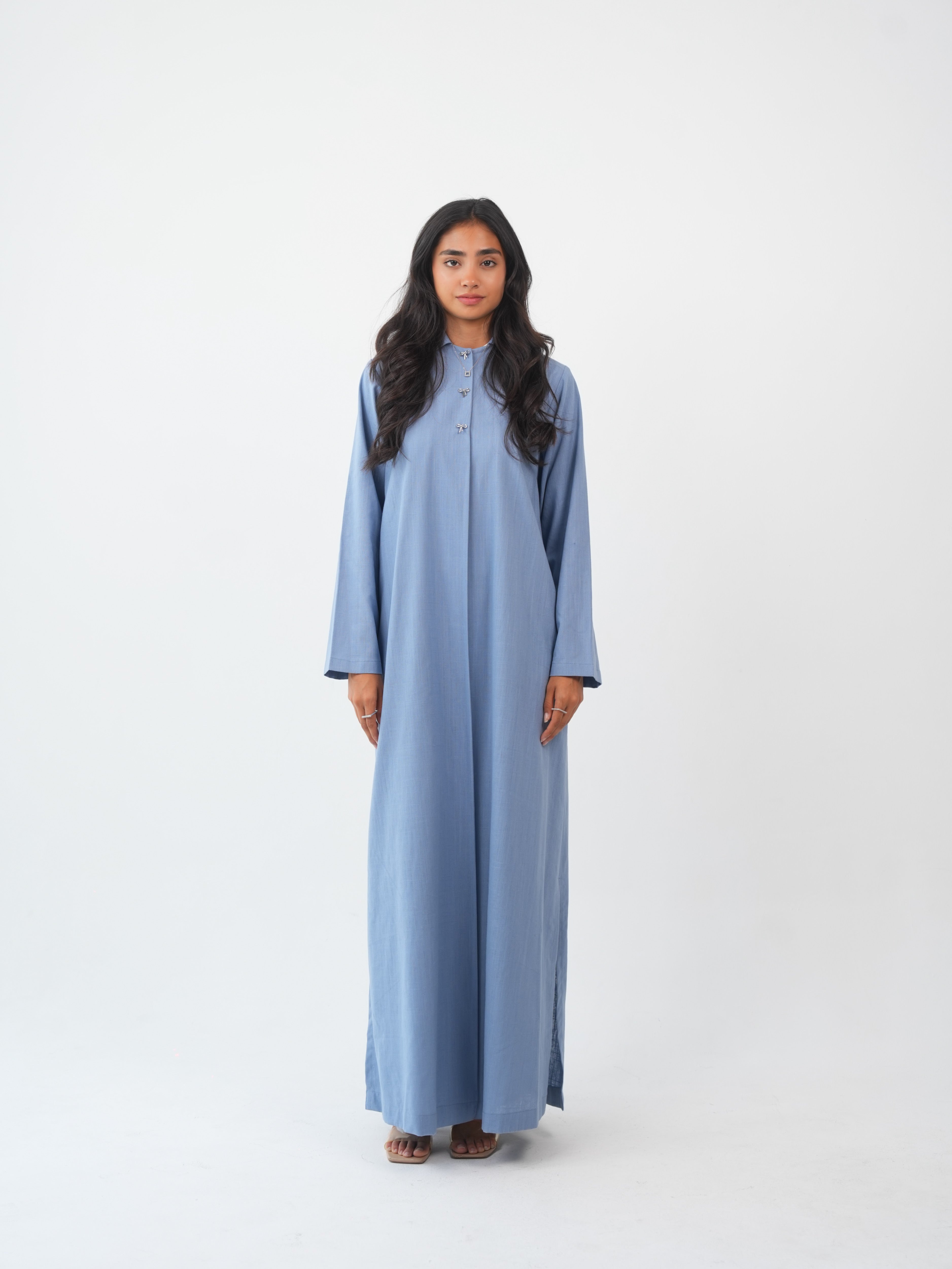 "Sara is a simple, long shirt that pairs effortlessly with any T-shirt or pants. Finished with delicate bow buttons, it adds a subtle touch of charm to everyday looks."